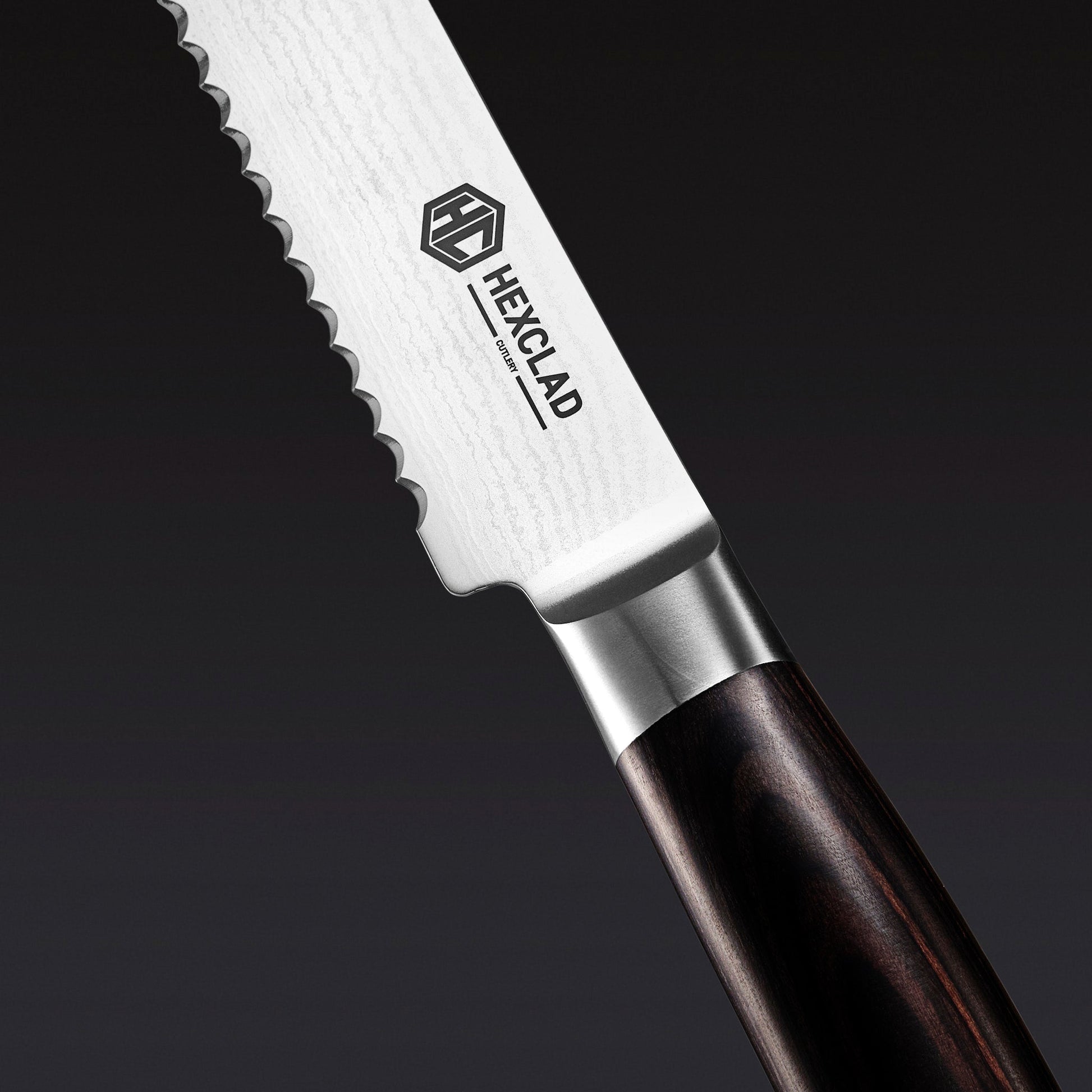 Our new espresso-colored Damascus steel knives are as striking in a modern kitchen as a rustic one, and we cut no corners in making them. Think: 67 layers of Damascus steel. Twelve degree blade sharpness. Rockwell ratings of 60 or higher. The knives themselves boast ergonomically designed pakkawood handles that have been treated with anti-shrinking technology, for added durability. This essential knife set¨Cwhich includes a honing steel¨Cwill both speed up your prep work and level up your cooking prowess.