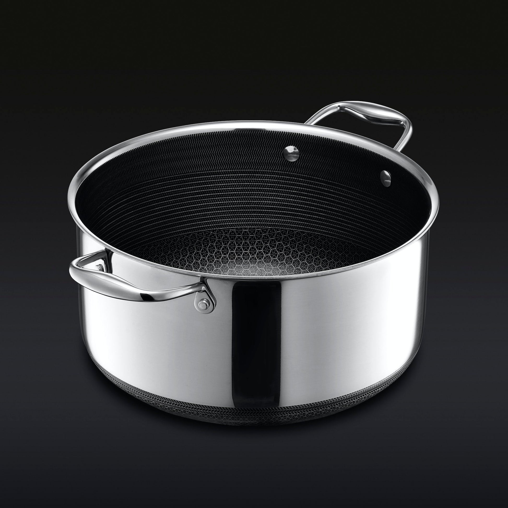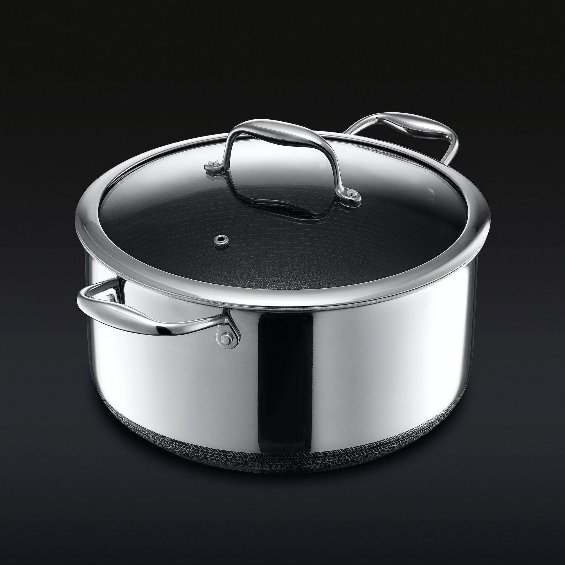 The HexClad 8QT Hybrid Pot with Lid is ideal for slow-cooking stews and soups, simmering stocks, and boiling pasta. It is one of the cornerstones of a well-equipped kitchen, and will surely earn a permanent spot on the stove. Our hybrid technology allows for easy clean-up, durability, and even heat distribution.